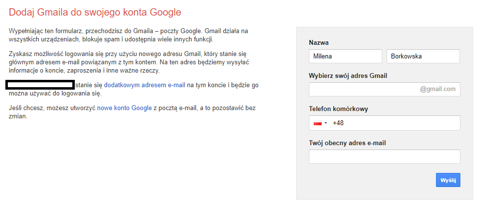 Jeśli posiadasz już konto mailowe i nie jest to Gmail – możesz wykorzystać je w celu utworzenia konta Google.